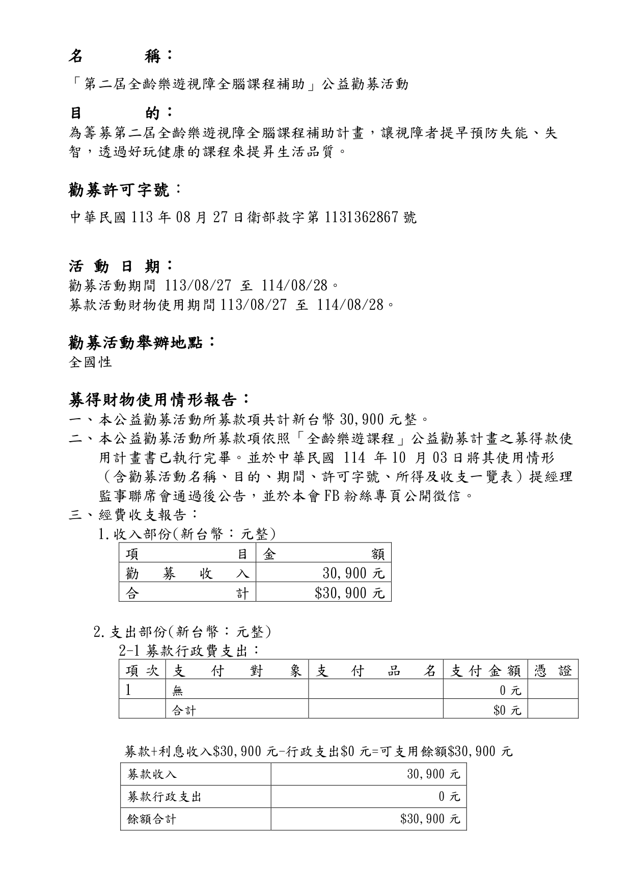 第一屆全齡樂遊視障全腦課程補助勸募的執行成果結案報告書